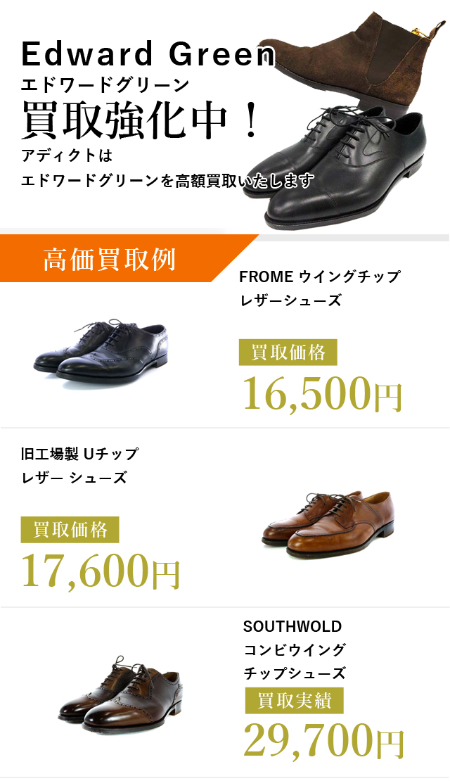 アディクトでは、エドワードグリーンを高価買取中です。日本全国どこからでもご利用いただけますのでお気軽にご利用ください。