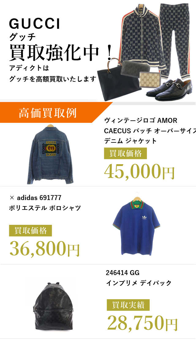アディクトでは、グッチを高価買取中です。日本全国どこからでもご利用いただけますのでお気軽にご利用ください。