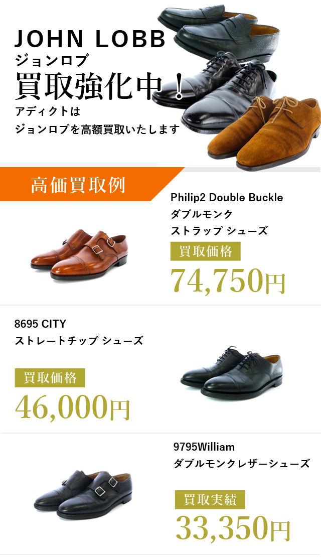 アディクトでは、ジョンロブを高価買取中です。日本全国どこからでもご利用いただけますのでお気軽にご利用ください。