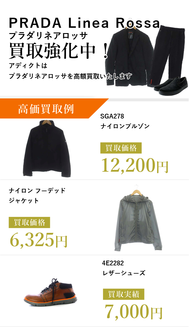 アディクトはプラダリネアロッサ以外のブランドも買取強化しております